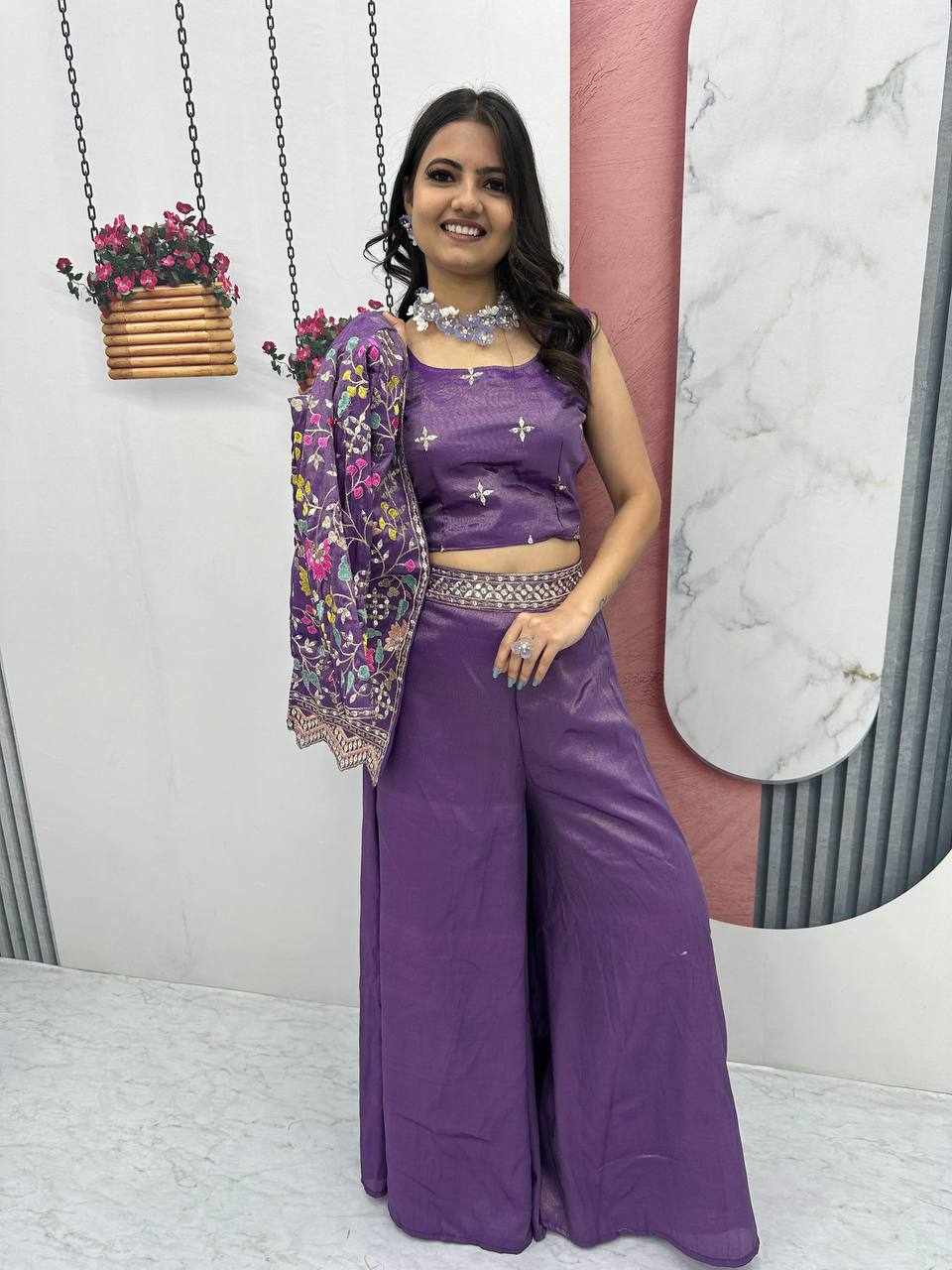 Pc 484 Wine Pure Tissue Simmer Party Wear Dress