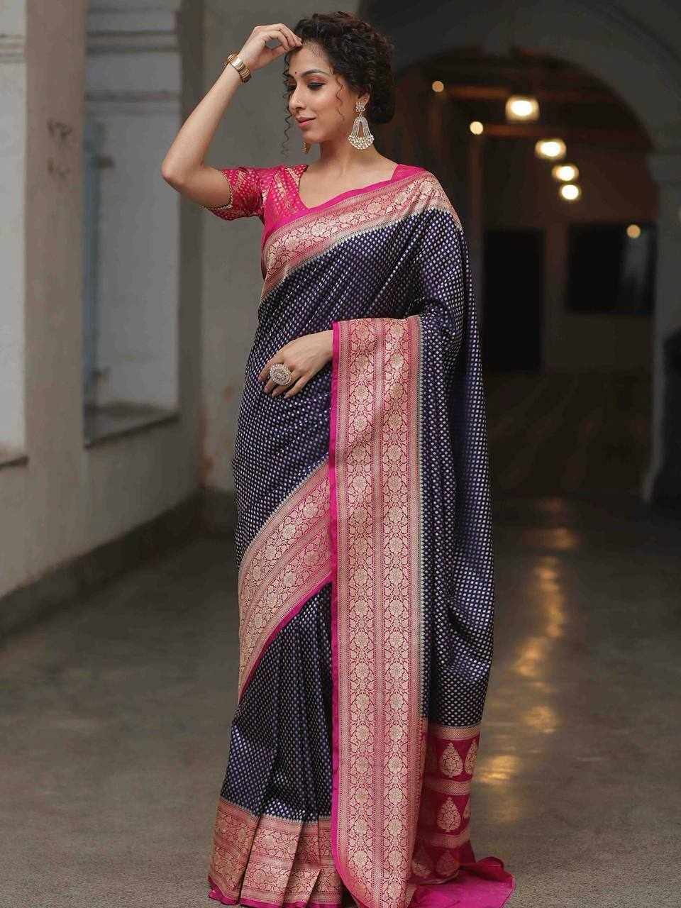 Design: Beautiful rich pallu with intricate jacquard work woven all over the saree, offering a graceful and luxurious look