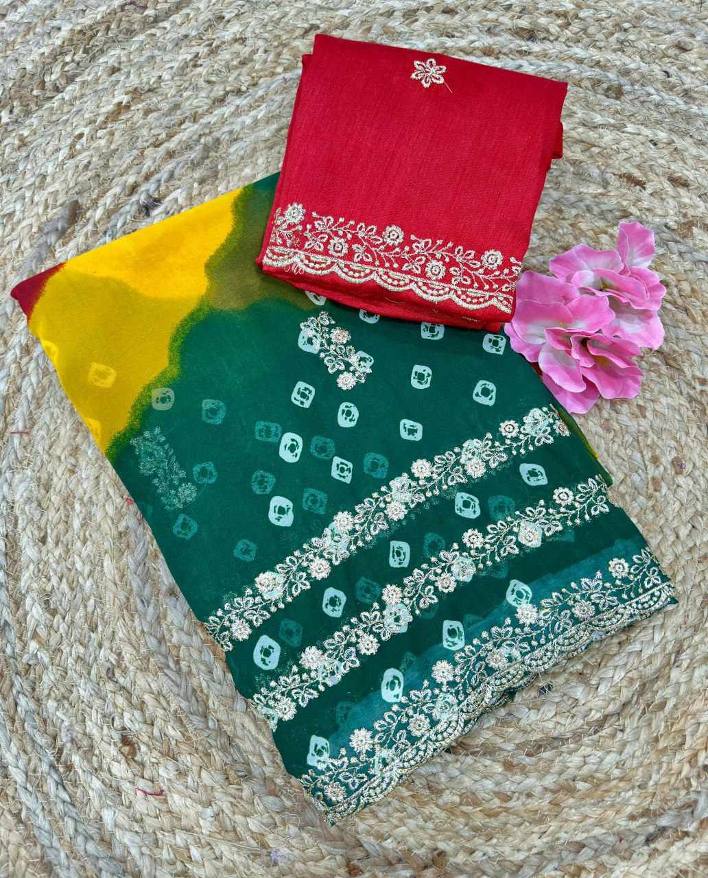 | Name : | PIYU P1051 LEHERIYA BANDHANI-3 Green Saree |