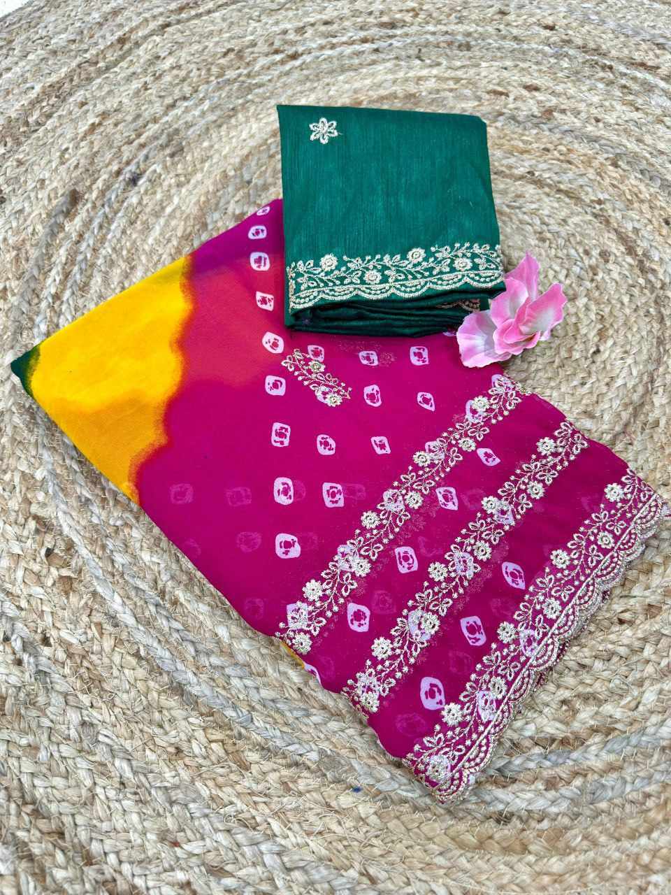 | Name : | PIYU P1051 LEHERIYA BANDHANI-3 Pink Saree |