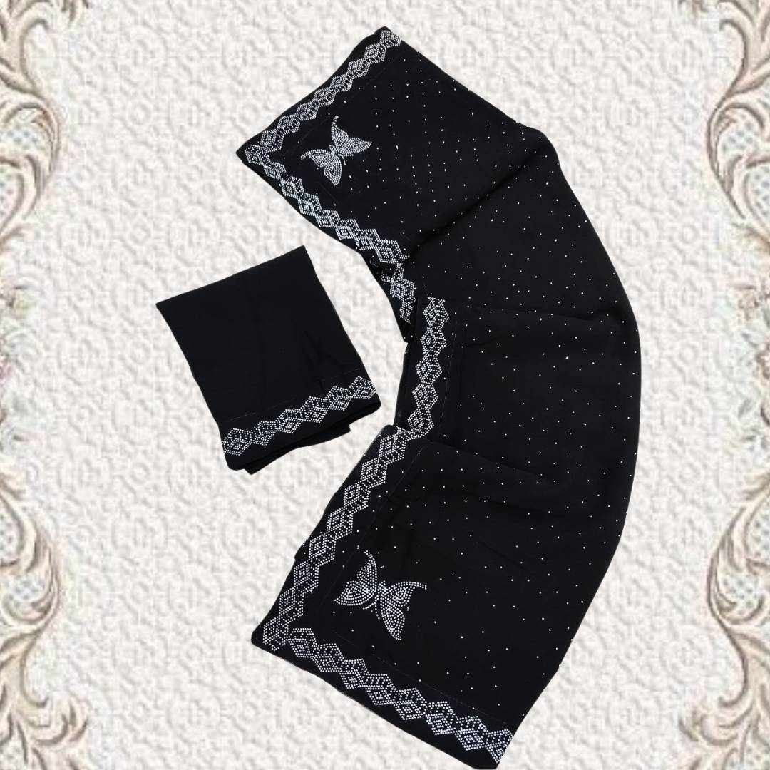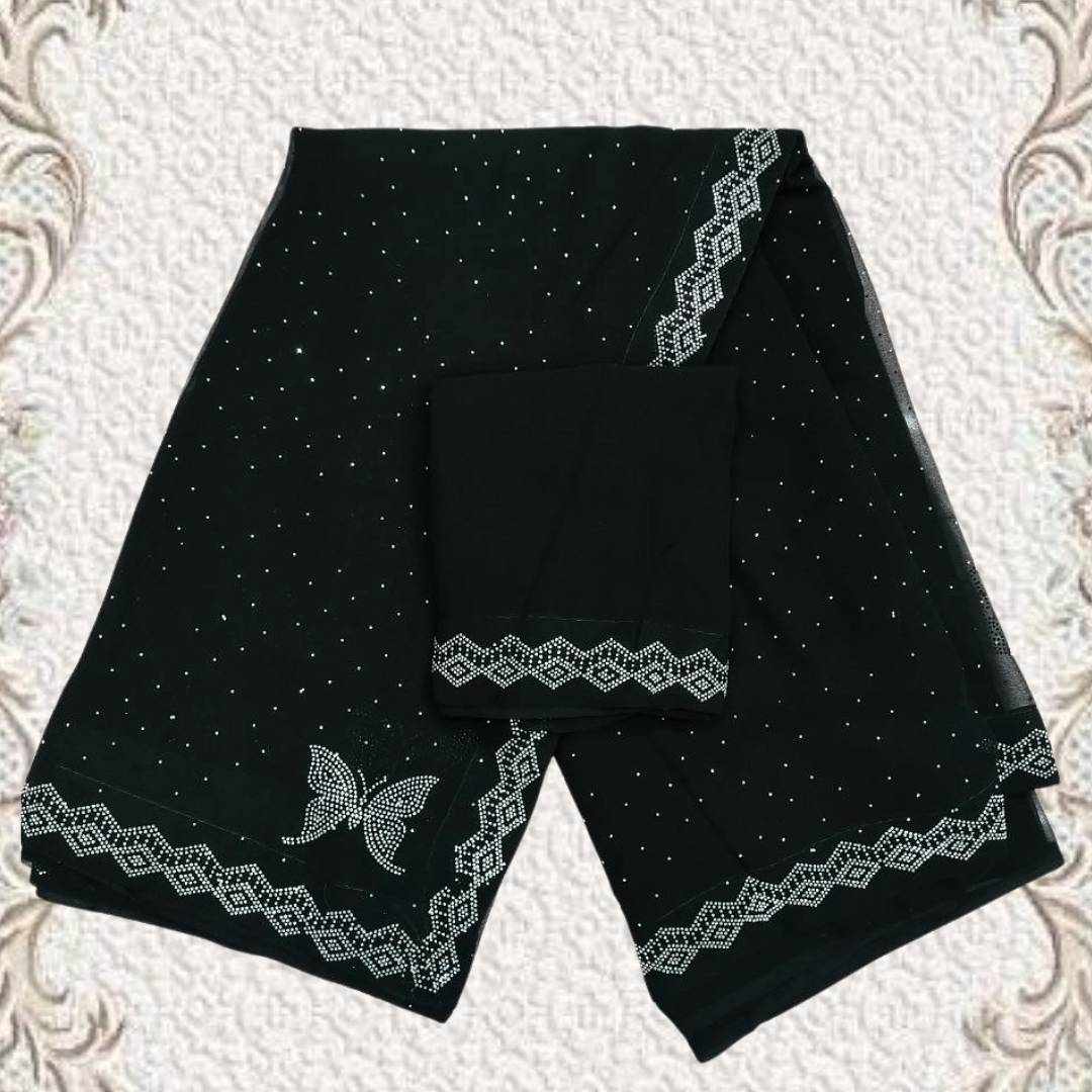| Name : | S4s Black Siroski Butterfly Stones Lace Georgette Party Wear Saree |