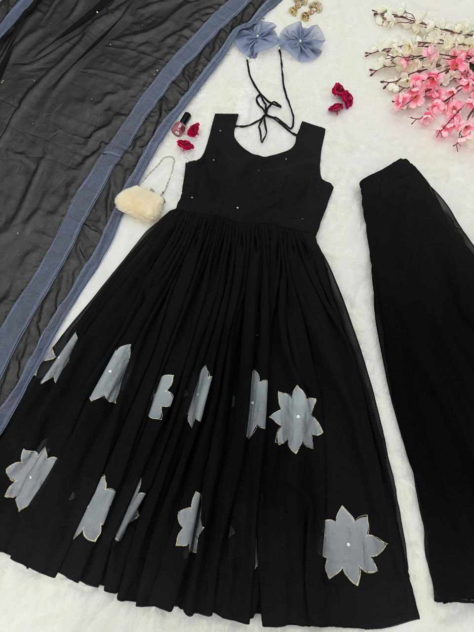 Plazo – Pure georgette flared plazo, fully stitched for a perfect fit