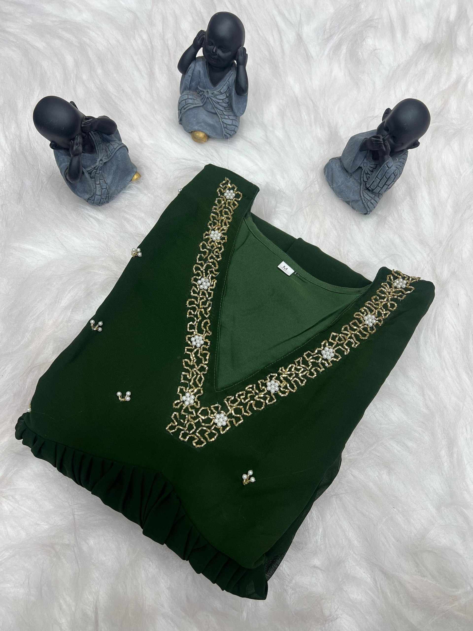 | Name : | WM10 GREEN BLOOMING GEORGETTE HANDWORK KURTI |